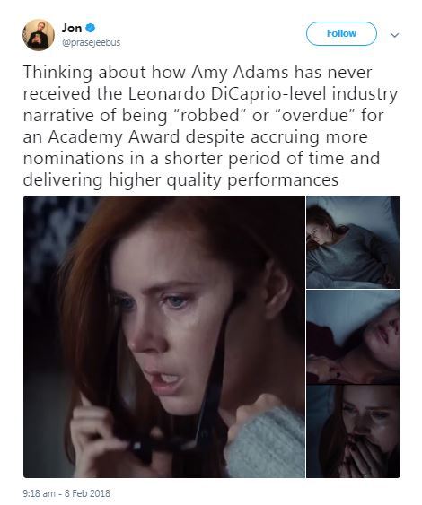 the fact she wasn’t even nominated for arrival is an absolute atrocity.