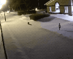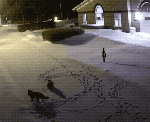 An encounter between an owl and a fox in Cobourg, Ontario, just before 2 in the morning on January 4, 2018.