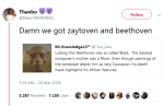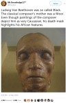 “Ludwig van Beethoven was of African descent, and the truth of his ethnic origins was covered up through a mixture of white powder worn on his face when out in public, the use of body doubles for portraits, and “euro-centric” historians, hiding the truth of his genetic heritage.“ – src